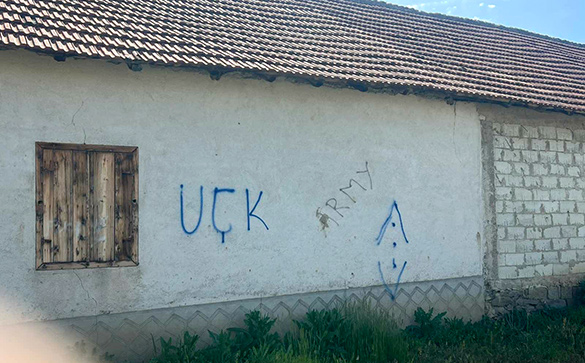 Na porodičnoj kući porodice Jovanović u selu Mogila u opštini Vitina noćas su ispisani grafiti koji veličaju terorističku organizaciju UČK.