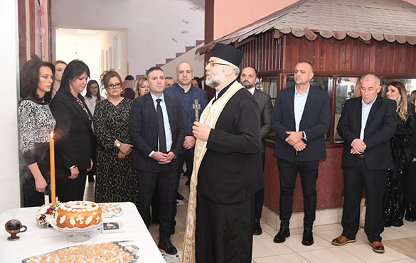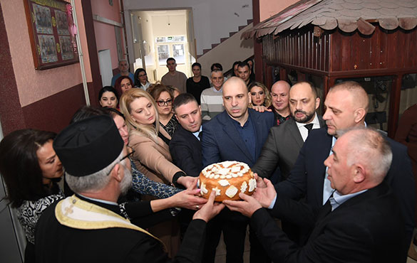 Славски колач је пресекао протојереј Радослав Јанковић, наставник верске наставе у овој школи и поручио да се данас радујемо дечијим гласовима који су мир, нада и будућност.