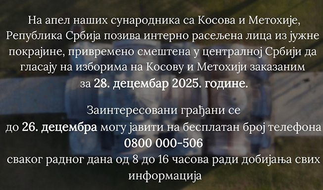 Komesarijat za izbeglice i migracije Republike Srbije pozvao je interno raselјena lica sa Kosova i Metohije, privremeno smeštena u centralnoj Srbiji ...