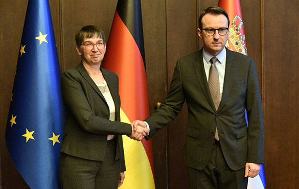 Direktor Kancelarije za Kosovo i Metohiju Petar Petković razgovarao je danas sa ambasadorkom Savezne Republike Nemačke Anke Konrad koju je upoznao sa tokom dijaloga Beograda i Prištine i političko-bezbednosnom situacijom u pokrajini koju svojim jednostranim potezima narušava Aljbin Kurti.