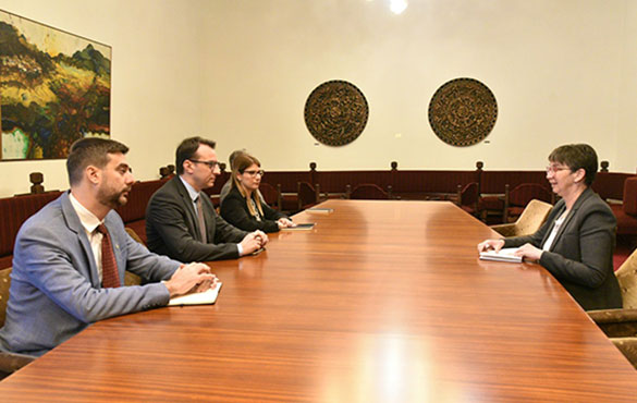 Direktor Kancelarije za KiM je preneo svojoj sagovornici da su Srbi sa Kosova i Metohije na nedavno završenim lokalnim izborima jasno iskazali svoju volju, posebno da žele da opštine na severu KiM vrate u srpske ruke, ali da albanski gradonačelnici nastavljaju sa protipravnim odlukama u opštinama sa srpskom većinom koje su u protivzakonite i na štetu našeg naroda.