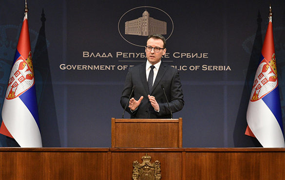 "Želim da se obratim srpskom narodu na KiM i sazvao sam vanrednu konferenciju kako bih saopštio da smo došli do rešenja koje će omogućiti nesmetan i normalan rad i funkcionisanje srpskih zdravstvenih i obrazovnih institucija na KiM. Na rešenju smo danima i nedeljama radili sa EU i ovog puta želim da pohvalim angažman (Petera) Sorensena i EU po ovom pitanju", rekao je Petković na vanrednoj konferenciji za medije u Vladi Srbije.