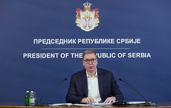 "Економско гушење више десетина приватних предузећа Срба, које је спроведено кроз злоупотребу инспекцијских служби и 14-месечни ембарго на српску робу", казао је Вучић и додао да су успоставили институционалну праксу да косовске институције крше сопствене прописе о службеном статусу српског језика.
