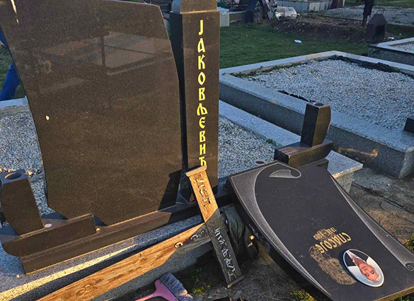 Рођаци породице Јаковљевић данас су на православном гробљу у Племетини затекли срушен споменик Спасоју и демолиран споменик Славице Јаковљевић, што је узнемирило Србе који живе у овој српској средини и који очекују заштиту и реакцију међународних представника.