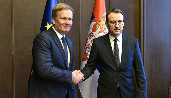 Директор Канцеларије за Косово и Метохију Петар Петковић састао се данас са специјалним представником ЕУ за дијалог Београда и Приштине Петером Соренсеном са којим је разговарао о току дијалога Београда и Приштине, као и примени решења Европске уније поводом такозваног приштинског закона о странцима, али и изналажењу решења за такозвани закон о моторним возилима.